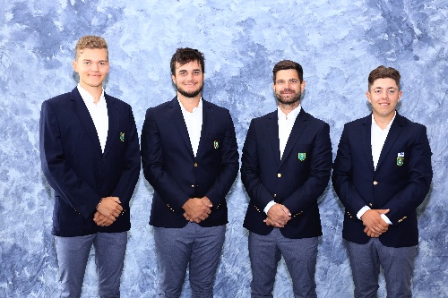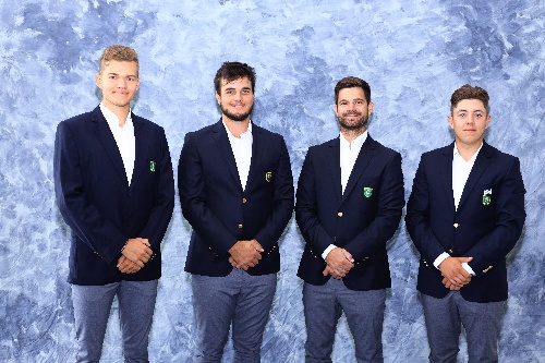 Hungary World Amateur Team, from left to right, Bálint Závaczki, Oliver Csanyi, Captain Gergő Böndicz and Richard Sarközi as seen during the practice round at the 2022 Eisenhower Trophy at Le Golf National, France on Tuesday, Aug. 30, 2022 (Copyright USGA/Steven Gibbons)
